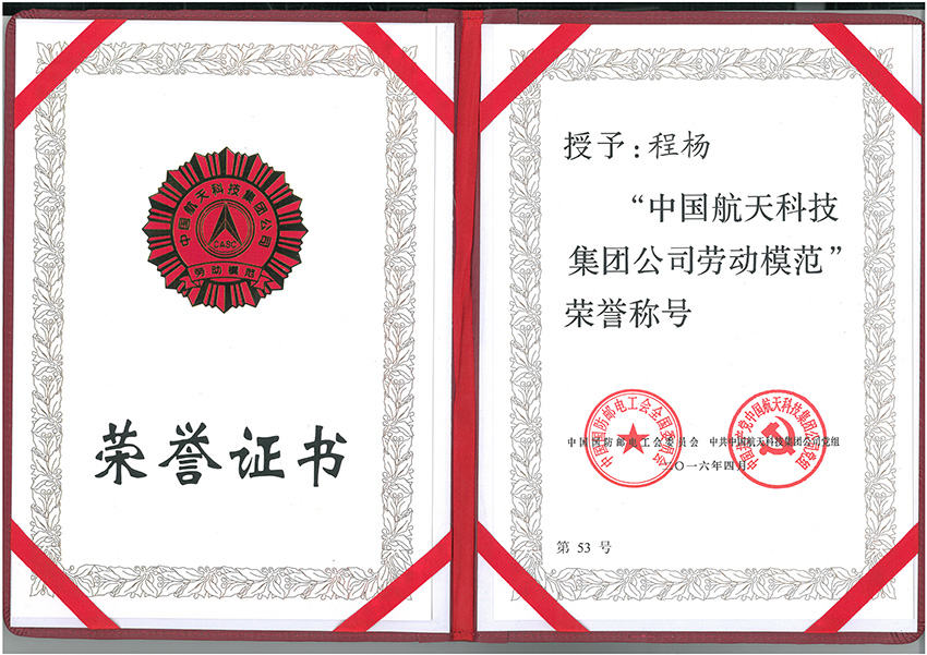 2016年4月,長城國際展覽責(zé)任有限公司總經(jīng),理程楊同志,榮獲“中國航天科技集團公司勞動模范”稱號。